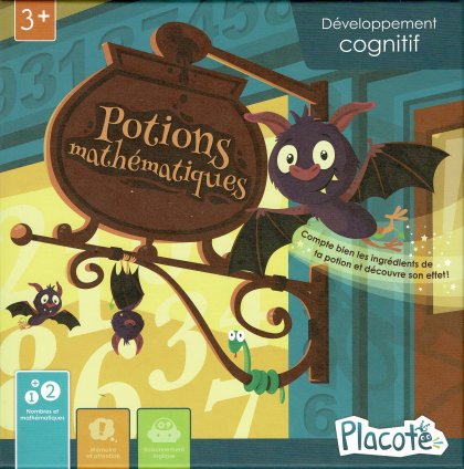 Trop souvent, placer le qualificatif « éducatif » à la suite du nom « jeu » en altère gravement le sens. Certes, on fait plaisir aux parents qui peuvent imaginer que leur enfant, grâce à ce "jeu", deviendra savant et millionnaire (ou professeur de mathématiques). mais le plus souvent, « éducatif » signifie plutôt « ennuyeux » (pour rester poli). Heureusement, quelques éditeurs ont su concilier dans leurs jeux les aspects didactiques et ludiques. C'est le cas avec Potions mathématiques, un des premiers jeux de l'éditeur québécois Placote. Certes, on va dénombrer et commencer à compter en même temps qu'on joue, mais on va le faire dans la bonne humeur en manipulant des chaussettes qui puent ou des bananes pourries pour réaliser des potions improbables. Une réussite.