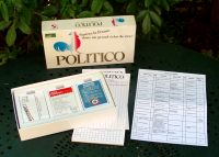Quelques précisions sur Politico par son auteur, Jacques Bertin : Le Politico a été édité en 1984 par les « Jeux TM » (cartes du Héron, établissements Boéchat, Mérignac - 33). Cette entreprise ayant connu de graves problèmes, le jeu ne circula que très peu de temps. Il fut un moment question d'une reprise par une grande marque que je ne puis citer, puisque l'affaire finalement ne se fit pas. Plus tard (1988), un imprimeur fit un nouveau tirage, dans un autre format, avec une nouvelle présentation. Mais celui-ci ne fut pas commercialisé, le nouvel éditeur, Gogny-Goubert, ayant entre-temps déposé son bilan. Le journal Politis, où j'étais responsable du service « Culture » depuis février 1989, acheta alors le stock (1000 exemplaires, sous marque Gogny-Goubert) qui fut proposé à la vente par correspondance aux lecteurs du journal. 600 exemplaires furent ainsi vendus. Lors d'un déménagement du journal, les 400 exemplaires restant furent égarés. JB |