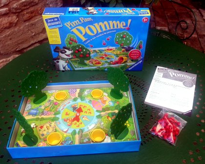 Le principe général est le même : cueillir tous ses fruits avant les adversaires. Le méchant est ici n'est pas un corbeau, mais un vilain garçon qui renverse les seaux de pommes. 2014 : Pim, Pam, Pomme !