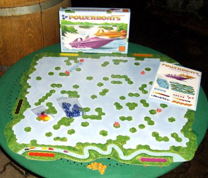 Quand on voit l'illustration de la boîte de Powerboats, avec ses deux hors-bords lancés à toute allure l'un à côté de l'autre, on imagine une course pleine d'interaction. Malheureusement, si les mécanismes sont fort astucieux, l'interaction est pratiquement absente. La seule possibilité d'influer sur le jeu des adversaires est, parfois mais trop rarement, d'opter pour une position qui empêchera un opposant de prendre une courbe idéale. C'est bien dommage, car la mécanique du jeu est franchement réussie, avec une gestion des dés aussi simple qu'originale. Lors des parties que j'ai pu faire, les réactions étaient mitigées. Pour ma part, j'ai bien aimé Powerboats, mais je ne peux que vous conseiller de l'essayer avant de l'acheter, pour vérifier qu'il convienne bien à vos goûts.