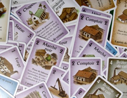 Oubliez la colle et les ciseaux. Pour jouer à l'excellent San Juan, vous n'avez plus besoin de vous couper les doigts : Filosofia, l'éditeur francophone qui monte, vient de publier enfin la version intégralement française. Si vous aviez patiemment collé des étiquettes sur une version barbare du jeu, ne le jetez pas. Filosofia vous propose sur son site une variante jusqu'à huit joueurs, pour laquelle vous aurez besoin de cette première boîte.