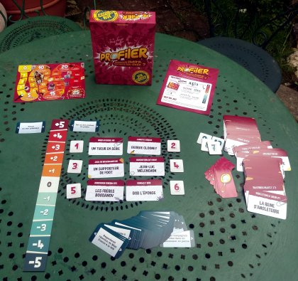 Dans Profiler, les joueurs doivent ensemble trouver quel personnage correspond aux deux critères placés par l'un d'entre eux sur des échelles de -5 à +5. Bien entendu, le joueur qui a placé les cartes ne participe pas à la résolution de l'énigme. Les joueurs éliminent une par une les cartes qui leur semblent ne pas répondre aux critères. S'ils ne se trompent jamais, ils peuvent marquer jusqu'à 5 points par manche. le jeu explore la même veine ludique que Unusual Suspects : trouver le candidat à l'aide d'affirmations. Mais dans le cas présent, on joue avec des personnes connues et les affirmations sont étalonnées. On peut regretter que le rôle du codeur soit limité au placement initial, mais on ne l'est qu'à tour de rôle.