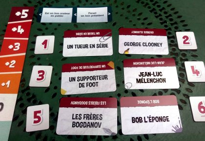 Bob l'éponge, bien sûr ! Variante du stagiaireDans cette variante, proposée par l'Escale à jeux, chaque manche se joue avec un profiler et un stagiaire profiler, réputé pour son incompétence. Il est récompensé quand les joueurs se trompent. Les joueurs ne regardent pas la mise en place. Le profiler et son stagiaire prennent connaissance du personnage à faire découvrir, puis ils tirent trois cartes : deux pour le profiler et une pour son stagiaire. Les cartes sont disposées sur l'échelle. Le but du stagiaire, en posant sa carte, est d'embrouiller les joueurs. Le profiler et son stagiaire placent leurs cartes face non visible pour ne pas s'influencer. Quand les trois cartes sont posées, elles sont retournées et les joueurs peuvent regarder la situation sur la table. Le jeu se déroule ensuite normalement. Lorsque la manche se termine, tous les chercheurs et le profiler marquent de 0 à 5 points comme dans la règle normale. Le stagiaire marque quant à lui les points inverses, soit de 5 à 0 points : il marque le maximum si les chercheurs se trompent dès la première carte éliminée. On joue autant de manches que de joueurs. Le joueur qui aura le plus de points à l'issue de la partie est déclaré vainqueur.