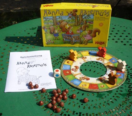 Provisions de noisettes est un jeu de pur hasard dans lequel les enfants incarnent des écureuils faisant leurs provisions pour l'hiver. Un peu de chance au dé permet de gagner des noisettes. Si vous tombez sur la case du Roi, le joueur qui possède le plus de noisettes vous en donne une. Le premier à posséder cinq noisettes gagne la partie. Rien de bien révolutionnaire, mais les noisettes sont à croquer !