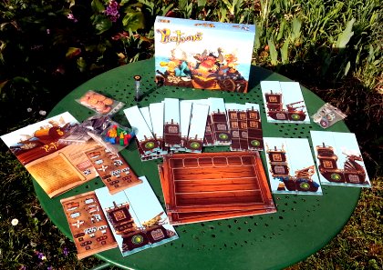 À la fois jeu de collecte, de rapidité et d'enchères, Piratoons apporte un vent nouveau, et agréable, dans le domaine des jeux de société. L'idée est de construire un plus beau bateau que les concurrents, avec des éléments qui s'assemblent au mieux et en laissant le moins d'emplacements libres possible. Si, en plus, vous parvenez à recueillir des séries de personnages identiques, vous voilà favori pour la victoire. Mais la collecte n'est pas aisée : il va falloir pendant le temps d'un court sablier poser vos pions sur les morceaux convoités, en sachant que seul le joueur strictement majoritaire sur un élément le récupère. En cas d'égalité, on laisse la place au suivant, ce qui est un beau gâchis. Le sablier est vraiment court, et il faut poser les pions avec un peu d'habileté car s'ils tombent, ils sont perdus pour le tour en cours. Le seul reproche qu'on pourra faire au jeu est son sablier presque illisible, même en pleine lumière. Mais tout le reste du matériel est de belle qualité, avec des illustrations réjouissantes. Bien joué !