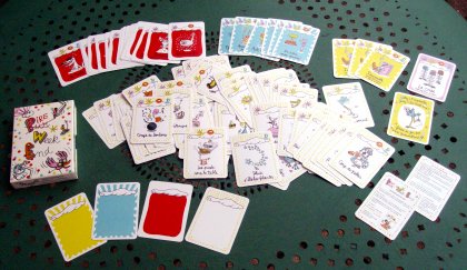 Comme dans tous les bons jeux d'expression, le but n'est pas tant de gagner que de s'essayer à l'improvisation, et surtout de passer un moment agréable entre amis. Si Pur Week End fonctionne bien à deux joueurs, il peut aussi se jouer à beaucoup plus. Il faut alors jouer par équipes, ce qui ajoute du piment au jeu car vous allez devoir raconter un événement dont vous n'avez pas choisi seul toutes les composantes. Comme il s'agit d'un jeu d'ambiance, on se fait bien sûr des crasses. Celles-ci consistent à essayer de pourrir le récit d'un adversaire en jouant une carte d'attaque adaptée, et ainsi de lui gâcher son week-end. Mais on peut contrer les attaques. Chacune des cent cartes du jeu est agréablement illustrée par Robinetta (Dorothée Reynaud). Quatre cartes restent vierges, pour vous permettre de personnaliser votre jeu avec vos propres souvenirs de week-end. |