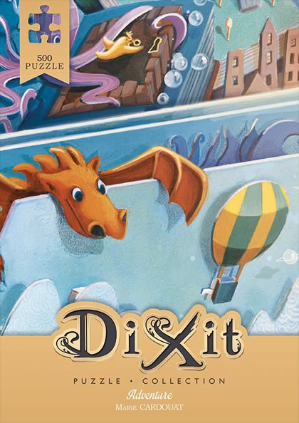 Puzzle Dixit - Adventures est un puzzle régulier de 500 pièces illustrant une carte du jeu Dixit dessinée par Marie Cardouat.