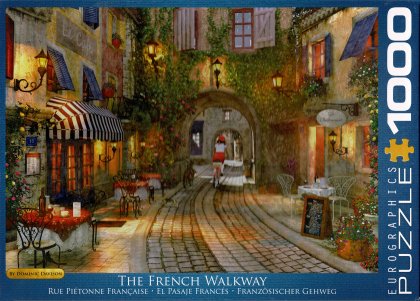 Puzzle - Rue piétonne française - The French Walkway est un puzzle de 1000 pièces d'après une illustration de Dominic Davison. Dimensions terminées : 48 × 68 cm.