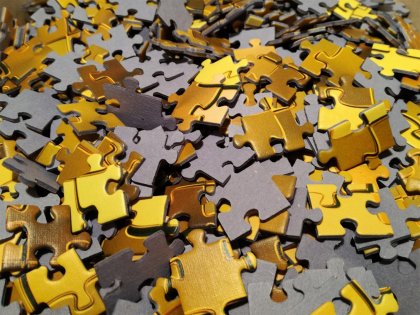 La difficulté de Puzzle - Puzzle ne vient pas de la forme des pièces mais bien du motif : un puzzle représentant un puzzle ! Une belle Mise en abîme.
