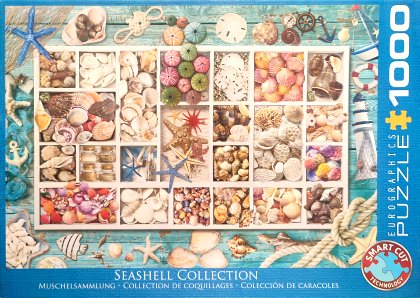 Puzzle - Collection de coquillages - Seashell Collection est un puzzle irrégulier de 1000 pièces présentant un pêle-mèle de coquillages.