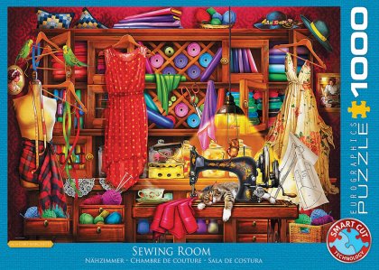 Puzzle - Chambre de couture - Sewing Room est un puzzle irrégulier de 1000 pièces d'après une illustration de Ciro Marchetti.