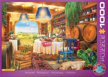 Puzzle - Vignoble - Winery est un puzzle irrégulier de 1000 pièces, représentant une allégorie de cave viticole. L'illustrateur n'a visiblement pas visité nos caves bourguignonnes.