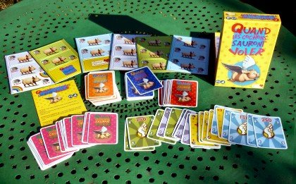Pour cela, rien ne vaut un petit jeu de simulation de vol. C'est ce que nous propose Sweet November avec Quand les cochons sauront voler. Chacun dispose du même jeu de cartes mais pas forcément au même moment. À tour de rôle, les uns et les autres ajoutent une aile à un des cochons de la piste de décollage. Lorsqu'un joueur ajoute la valeur nécessaire pour soulever la masse, il gagne la carte. Pour gagner, il suffit donc de jouer cette dernière carte et de laisser les autres jouer celles d'avant. Oui, mais voilà… On est obligé de poser une carte à chaque tour. Il faut donc « sentir » le jeu des adversaires, mais aussi un peu se rappeler les cartes qui sont déjà passées. Le jeu est agréable pour meubler quelques instants d'une soirée entre amis ou en famille, mais on n'y jouera pas non plus toute la nuit. |