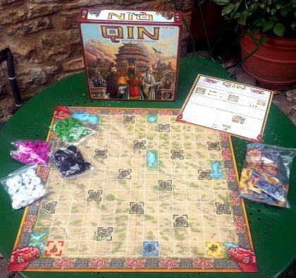 Sous des apparences de gros jeu, Qin (prononcer Chine) est expliqué en trois minutes et se joue en vingt. Deux à quatre protagonistes s'affrontent pour occuper le mieux possible le territoire. Chaque province créée permet de poser une pagode. Et si la taille de la province atteint cinq ou plus, la pagode est doublée. Tout village qui jouxte une de vos province reçoit également une pagode. Et comme le but du jeu est de se débarrasser de toutes ses pagodes, on voit facilement ce qu'il faut faire. Oui, mais… Les adversaires ne vont pas vous laisser tranquille ! Les villages annexés, par exemple, peuvent être repris si une province plus importante vient à les côtoyer à son tour. Une nouvelle province, nécessairement petite au début, peut se voir annexer par une plus grosse province voisine. Parfois, même, un adversaire provoquera la fusion de deux de vos provinces, vous faisant perdre au passage une pagode (n'y voyez aucune allusion à la fusion de régions dans un pays fictif, entraînant la perte d'un magnifique hôtel de région flambant neuf). Bien que les jeux soient très différents, on retrouve dans Qin l'esprit de Tigre & Euphrate. Les deux jeux traitent du partage territorial. Ils sont tous les deux élégants. Mais Qin reste extrêmement plus simple, et facilement abordable par tous les publics.