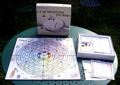 La Quarantaine en crise est une sorte de gros Jeu de l’oie sur le thème du temps qui passe. On jette le dé, on avance, on tire des cartes qui nous font avancer, reculer ou passer des tours. Bof… |