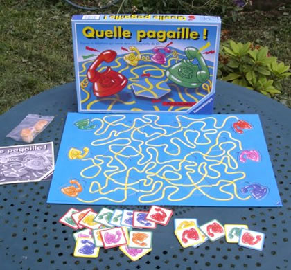 Les lignes de téléphone se sont embrouillées et il faut retrouver rapidement qui appelle. Pour cela, on suit le fil téléphonique, et dès qu'on a trouvé le téléphone appelant, on place sa carte sur la table. Les joueurs suivants posent aussi leur carte. Celui qui aura le premier trouvé quel téléphone était le bon gagne un jeton. Le souci, c'est qu'entre chaque manche on intervertit deux téléphones ou deux croisements. Aïe aïe aïe… Le jeu, conçu pour les enfants, amuse en fait toute la famille. |