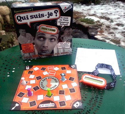 Qui suis-je ? - Électronique nous pose plus d'une question. Le titre fait penser au fameux Qui est arrivé en premier ? L’œuf ou la poule ? mais non, il ne s'agit pas d'un jeu de déduction logique. L'apparence, avec son bandeau qu'on place autour de la tête et où apparaît un nom ou un mot fait penser à la famille des Amnésia, Devine tête ou Suis-je une banane ?. Mais il ne s'agit pas de poser des questions aux autres pour deviner ce qui est écrit sur son front. En fait, Qui suis-je ? - Électronique est beaucoup plus proche, dans l'esprit, de Time’s Up! puisqu'il faut trouver le plus de réponses possible en un temps limité. On est pour cela aidé des partenaires de son équipe, qui peuvent tout dire sauf le mot à deviner ou un homonyme. Il est également possible de mimer, de fredonner, etc. À chaque bonne réponse, le pion de l'équipe avance d'une case. Une petite tape sur le bandeau et un nouveau mot apparaît. La variété du lexique est importante, avec deux mille mots ou expressions enregistrés. Vous pouvez être une chignole, John Travolta ou un GPS ! Seule fausse note : quelques fautes d'orthographe ont échappé aux développeurs.