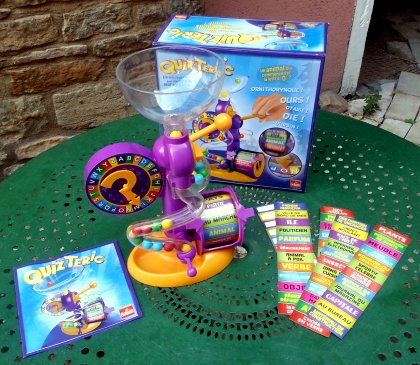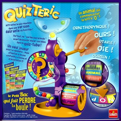 Si la machine est jolie, l'idée n'est pas si nouvelle. On retrouve en effet, en plus élaboré, les mêmes mécanismes que dans Perds pas la boule d'Henri Sala, où, déjà, on déterminait le joueur en droit de répondre par un lancer de bille colorée dans un cône. Même le slogan en couverture de Quizteric, « Le Petit Bac qui fait perdre la boule » rappelle son ancêtre.