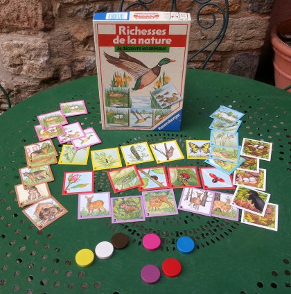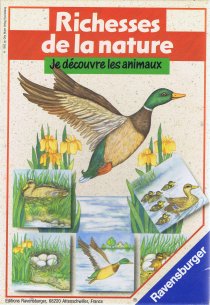 Au départ, toutes les cartes sont retournées face cachée. À son tour, le joueur retourne une carte. Il peut la poser si c'est une « 1 » ou si la carte du même arbre et de numéro précédent est déjà posée. Par exemple, si les cartes « 1 » et « 2 » du marronnier sont déjà posées, il est possible de poser la troisième, c'est-à-dire la feuille. Un joueur qui dépose la cinquième carte d'un arbre gagne la série. Le livret contient la règle ainsi que des informations édifiantes sur les arbres. Comme quoi, il est possible de faire un jeu « éducatif » qui ne soit pas ennuyeux. 1993 : Richesses de la nature - Je découvre les animaux