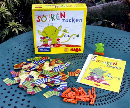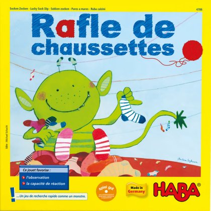 De toutes les corvées ménagères, le tri des chaussettes est certainement la plus ludique. Il est donc logique qu'un auteur ait eu l'idée d'en faire un jeu. Le prétexte de Rafle de chaussettes est de ranger des chaussettes. Mais comme on est dans la famille Maso, elles se ressemblent toutes, bien qu'il n'existe qu'une seule paire de chaque sorte. Au signal, chacun se précipite sur le tas au centre de la table, mais avec une seule main, l'autre étant dans le dos. Le premier à assembler cinq paires convenables gagne une magnifique pince à linge. Si par hasard il vous manque une chaussette, rien d'étonnant à cela. Il s'agit bien entendu d'une