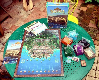 Surveillez Fabio Lopiano ! Cet auteur italien a encore peu de jeux à son actif mais il cumule les succès. Ragusa (aujourd'hui Dubrovnik) est en pleine construction. Vous avez à cœur de développer à la fois la production de matières premières, la construction de la ville et le commerce international. Le jeu fourmille de possibilités et de mécanismes de jeu aussi originaux qu'intéressants. Ragusa est un peu difficile à maîtriser au départ, mais chaque nouvelle partie permet de se perfectionner. L'éditeur a eu la bonne idée d'imprimer des petits numéros sur le plateau et les cartes qui renvoient dans la règle à la page concernée.