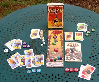 Certes, Red Hot Silly Dragon est de petite taille, mais il ne faut pas se fier aux apparences. On trouve en effet dans un volume réduit vingt aventuriers, un dragon, une princesse et des trésors en pagaille. Pour une fois, il ne s'agit pas d'aller tuer le dragon, mais de s'approcher entre deux éternuements enflammés de son antre, pour y dérober des pierres précieuses. Chaque équipe est constituée de quatre aventuriers. Enfin, au début de la partie, du moins. Car quelques-uns se font rapidement transformer en brochettes. L'ambiance est assurément présente dans des parties aussi rapides que chaleureuses. Les très jolis dessins d'Olivier Fagnère participent à créer une ambiance plus que sympathique. Il est par exemple difficile de résister aux appels de la Princesse prisonnière du dragon quand on la voit, même si ramasser l'or et les pierres précieuses ne manque pas d'attraits.