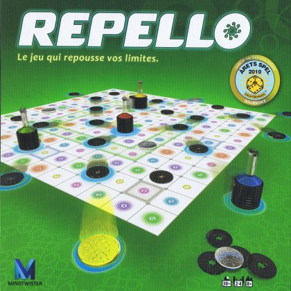 Repello allie deux caractéristiques intéressantes : simplicité et innovation. Le jeu ne ressemble guère à quelque chose de connu. Chaque joueur possède un pion, qui est en fait une pile de jetons. À son tour, il déplace sa tour en laissant sur place un jeton. Le sens du déplacement est libre, mais le nombre de cases est déterminé par le premier nombre rencontré. Lorsque le déplacement est terminé, on résout les proximités. Deux jetons ou tours ne peuvent jamais être voisins, que ce soit par un coin ou par un côté. Si c'est le cas, il faut reculer l'un des deux en l'éloignant d'une case. Ce mouvement peut provoquer un nouveau voisinage, qu'il faudra résoudre à son tour, etc. Lorsque plusieurs voisinages apparaissent, ils sont résolus dans l'ordre décidé par le joueur actif. Le but est de pousser des jetons ou des piles à l'extérieur du jeu, ce qui permet de gagner des points. La durée de la partie est réglable : il suffit de convenir avant de commencer du nombre de jetons de chaque pile. Amusant et intéressant.