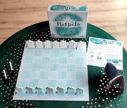 Reflecto reprend une idée d'un autre jeu de Roberto Fraga, Princess Jing, des pions masqués que l'on peut découvrir grâce à un jeu de miroirs. Prenez L’Attaque, Princess Jing, Fantômes. Ajoutez quelques lettres. Mélangez bien, puis présentez le tout sur un joli tablier de 49 cases. Vous obtenez un intéressant jeu de déduction et de lettres. Essayé et adopté !