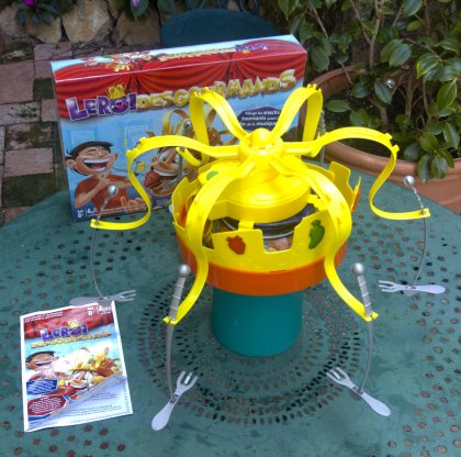 Le Roi des gourmands, c'est une grosse machine en forme de couronne, surmontée d'un manège de six fourchettes ajustables en hauteur pour s'adapter à toutes les tailles de chefs. À ces fourchettes, on fixe les friandises de son choix (non fournies) : chamallows, petits fruits, crocodiles mous, tomates farcies… Le but du joueur actif est d'en attraper le plus grand nombre quand elles passent devant sa bouche.