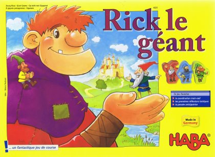 Rick le géant met en œuvre deux mécanismes ludiques intéressants : la prise de risque et la programmation. Pour amasser rapidement des pièces d'or, il vous faut aller de châteaux en châteaux à l'aide du géant Rick. Mais pour cela, il vous faut les cartes qui permettent de traverser les contrées. À son tour, un joueur a le choix entre deux possibilités : piocher des cartes ou voyager. Quand on pioche des cartes, on s'arrête quand on veut ou dès qu'un voleur apparaît. Si on s'est arrêté avant qu'un voleur ne surgisse, on prend en main toutes les cartes gagnées, elles serviront à voyager. Mais quand un voleur arrive, ce sont les adversaires qui se réjouissent car il vont se distribuer les cartes tirées. Le voyage s'effectue sur les épaules de Rick le géant. Il avance de case en case en effectuant des enjambées comme le ferait un compas sur une feuille. Pour chaque case où Rick pose les pieds, il faut payer une carte de sa main. Attention de bien programmer son voyage, sinon le tour est perdu. Et le temps, c'est de l'or ! Rick le géant est une très belle réussite pour un jeu totalement familial, qui intéressera autant les enfants que les parents.