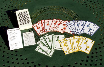 Les amateurs de Bridge contrat, de tarot et de belote devraient être intéressés par Roimat, un jeu par équipes qui renouvelle agréablement le genre, pour peu que vous aimiez vous torturer les neurones. Dans ses principes de base, Roimat ne diffère guère des jeux classiques d'annonces et de levées. Il prend toute sa saveur du fait du rôle particulier des cartes. Le jeu est composé de quatre couleurs de neuf cartes : une dame, une tour, un cavalier, un fou, un roi et quatre pions. À partir de là, chacune des deux équipes s'efforce de réaliser deux contrats. Le premier contrat consiste pour l'équipe preneuse à placer son roi d'atout à la dernière levée (le roi remporte dans ce cas la levée, quelles que soient les cartes en présence) ; l'équipe en défense essaie bien sûr d'empêcher le roi d'arriver au bout. Le second contrat consiste à faire la majorité des levées. Chaque contrat peut être contré et surcontré. La marque est un peu complexe, mêlant les points de contrat, réussi ou non, et les points des cartes remportées dans les levées. De ce côté, une simplification serait appréciée. Roimat est surtout intéressant pour son jeu de la carte particulièrement biscornu. En effet, les principales cartes ont une influence sur le sens de jeu. Par exemple, en attaquant une levée du cavalier, celle-ci se déroulera en zigzag : à gauche, puis à droite, puis en face. Mais si le second joueur pose une dame ou une tour, il peut modifier le sens de la levée. Autant vous prévenir : on ne joue pas à Roimat en dilettante. Mais une pratique régulière entre amis permet de jouer à un jeu plus complexe que la belote, mais quand même moins difficile d'accès que le bridge. |
