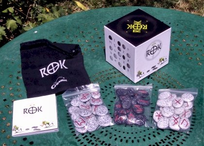 Le but est de récupérer des paires de runes identiques, parmi diverses pierres jetées en pluie sur la table. Il faut donc être rapide pour gagner des pierres. Mais il faut aussi guetter l'apparition de son propre emblème ou celui d'un autre joueur. Car s'emparer de l'emblème d'un adversaire permet de gagner quelques-unes des pierres qu'il a durement amassées. Et s'emparer de son propre emblème permet de se prémunir contre les vilains mal intentionnés. La grosse boîte cubique, symbole des jeux familiaux de qualité chez Gigamic, contient un joli sac en tissu, qui permet d'emporter facilement Rök en balade ou en week-end. Ce serait bien dommage de s'en priver. |