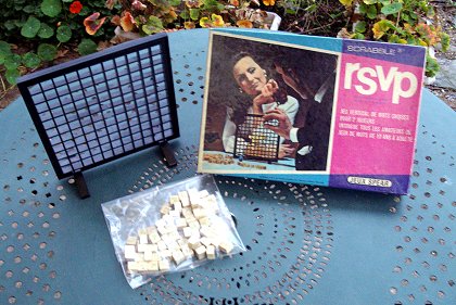 Selchow & Righter est le premier éditeur du fameux Scrabble. Parmi les diverses déclinaisons de ce jeu de lettres, l'éditeur a imaginé RSVP, une version volumique où les pièces sont des cubes marqués sur deux faces opposées. On joue à deux, chacun de son côté de la grille. Bien sûr, on ne se limite pas aux palindromes ! Pour être valable, il suffit que le mot le soit du côté de celui qui le compose. Plus anecdotique que réellement intéressant.