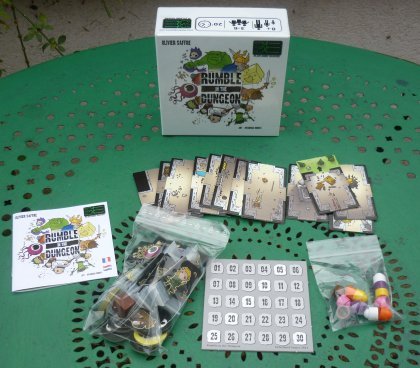 Le succès de Rumble in the House entraînant un nouveau tirage, l'éditeur a judicieusement choisit de proposer à la fois le même jeu, une nouvelle règle et la possibilité de coupler les deux boîtes pour embrigader encore plus d'aventuriers dans le dédale des pièces. La nouveauté, c'est le coffre au trésor. Un joueur peut se déplacer avec, même s'il est dans une pièce où il n'est pas seul. Et s'il parvient à quitter le château avec le trésor, il marque le maximum de points. Ce simple ajout redonne du piment au jeu. Vous pouvez même, si l'éditeur ne vous voit pas, ajouter un petit cube en bois à votre boîte de Rumble in the House pour jouer avec la règle de Rumble in the Dungeon. Attention de ne pas vous faire prendre !