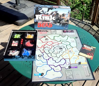 Risk The Walking Dead est une adaptation plutôt réussie de Risk. L'éditeur ne s'est pas contenté de changer le thème. Il a intégré des nouveautés parfaitement compatibles avec la série et les romans. En particulier, chaque survivant éliminé a une chance sur deux de se transformer en zombie ! Intéressant.