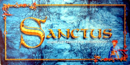 L'énorme boîte de Sanctus contient un grand tablier de jeu totalement inutile (il faut bien justifier le carton d'emballage), ainsi qu'un gros paquet de cartes proposant des questions sur les saints. Il faut reconnaître au jeu une volonté de sortir des sentiers battus. Si on s'intéresse un peu à l'histoire de l'église catholique et de ses saints, on est souvent surpris des anecdotes et des faits méconnus apportés par les réponses aux questions.