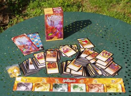 Je modifierais personnellement une seule petite chose dans le jeu. Le maire, le croque-mort et le shérif, qui n'existent qu'à un seul exemplaire, sont des cartes qui mettent une réelle bonne ambiance dans la partie. S'ils ne sortent que tardivement, la partie peut être un peu terne. Je conseille donc de sortir ces cartes du paquet, de bien battre le jeu, et de les réintroduire aléatoirement dans une première partie du paquet, qu'on battra également avec vigueur (ça ne fait pas de mal). Un bon jeu d'ambiance, qui aurait mérité des cartes toilées de meilleure qualité. 2005 : Les Fils de Samarande