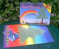 À son tour, le joueur jette quatre dés. Le bleu indique combien de gouttes de pluie acide tombent sur l'arbre ou le dévalent. Il doit mettre à profit les trois autres dés pour se déplacer, et aller ramasser les gouttes. Il faut agir avec précaution, car si on se retrouve coincé et qu'on ne peut pas utiliser tous ses dés, ceux-ci sont affectés à la chute de nouvelles gouttes. À la fin de la partie, soit la pluie acide atteint les racines de l'arbre et tout le monde a perdu, soit les joueurs sont parvenus à ramasser toutes les gouttes. Dans ce dernier cas, c'est le joueur qui en a ramassé le plus qui est désigné vainqueur. Il faut toujours que certains se mettent en avant : coopération dans la lutte contre les pluies acides, oui, mais c'est moi qui veux la médaille ! Un bon système de gestion des dés rend Sauerbaum intéressant. À éviter avec les joueurs qui réfléchissent trop longtemps, surtout si on joue à sept ! |