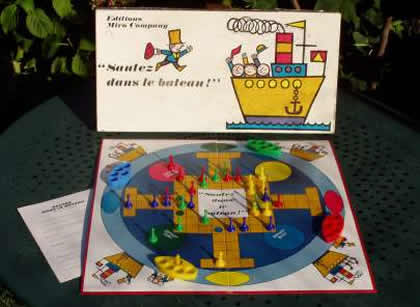 Merci à Michel Boutin, qui m'a dégotté cette intéressante curiosité ludique. Sautez dans le bateau ! est un jeu dérivé des Dames chinoises, agrémenté d'une idée surprenante : la case d'arrivée bouge sans cesse…