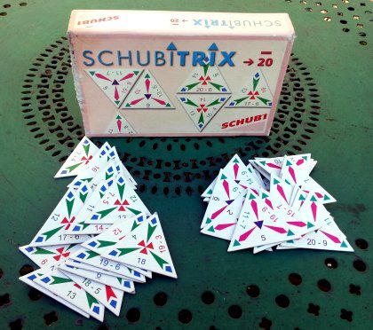 Schubitrix est une série de jeux didactiques basés sur les mécanismes des dominos triangulaires comme les célèbres Triominos. Le but est d'utiliser le jeu pour faciliter les apprentissages. De très nombreux modèles sont proposés par l'éditeur , sur le thème du calcul mais aussi de la logique, de l'heure, de l'orthographe, etc. 1996 : Schubitrix - Addition jusqu’à 20