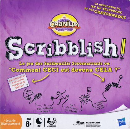 Scribblish est basé sur la même idée que Esquissé ? : le jeu du téléphone arabe où les dessins viennent remplacer la parole. Le matériel est différent — feuilles jetables au lieu de carton effaçable, minuteur à piles au lieu de sablier — et le nombre de joueurs est limité à six. À vous de choisir…