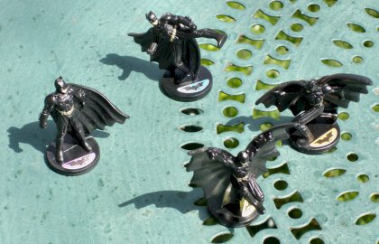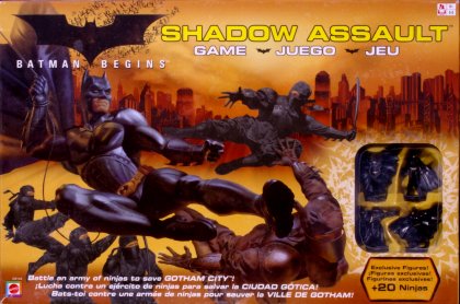 Dans Shadow Assault vous pouvez jouer Ra's Al Ghul Il vous faudra auparavant assimiler des règles qui semblent bien longues et compliquées quand on a une seule envie : en découdre ! Shadow Assault est surtout intéressant pour ses quatre avatars de Batman, et les vingt ninjas lancés à ses trousses. L'éditeur ne s'y d'ailleurs pas trompé : il a pratiqué une fenêtre transparente dans le couvercle de la boîte pour qu'on puisse voir les jolies figurines. |