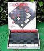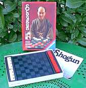 Shogun est un jeu de damier à deux joueurs. L'originalité consiste en des pièces dont la valeur change avec des aimants dissimulés dans les cases et les pions. L'esthétique du jeu est médiocre et l'intérêt décroît rapidement. Une déception chez Ravensburger qui avait su nous habituer à mieux. Ci-dessous trois modèles : la grande boîte Ravensburger, la boîte Nathan, la boîte voyage Ravensburger.