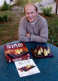 Dans la même collection que Diam, voici Siam, un jeu de Didier Dhorbait, magnifiquement édité par Ferti : tablier en bois et pièces en résine peinte à la main (probablement par des anciens élèves des Beaux-Arts à jour de cotisation syndicale).