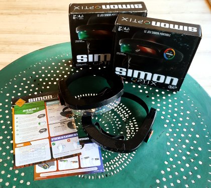 J'avais 22 ans quand le jeu Simon est apparu dans les rayons jeux et jouets. À cette époque, le jeu représentait une petite révolution et j'en ai fait de nombreuses parties avec grand plaisir. Plusieurs jeux lui ont succédé et, près de 50 ans plus tard, un drôle de casque nous a été proposé appelé Simon Optix. Si vous êtes plusieurs à vouloir y jouer, il vous faudra attendre votre tour ou acheter plusieurs boîtes. Je vous préviens tout de suite : c'est inutile. Le jeu présente peu d'intérêt, il fonctionne plus ou moins bien et il y a de grandes chances qu'il finisse, comme mes deux boîtes chinées en vide-grenier, dans une cave, un grenier ou… un autre vide-grenier !