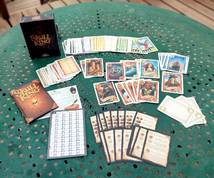 Skull King est un énième jeu de levées annoncées, agrémenté de quelques cartes à effet spécial sur le thème de la piraterie. La principale différence avec le jeu de L’Ascenseur réside dans la simultanéité de l'annonce du nombre de levées que chacun pense réaliser, ce qui est, à mon avis une dégradation (j'aimerais bien que les dictionnaires introduisent enfin le terme "démélioration") du mécanisme. Les deux plus importants attraits des levées annoncées sont le choix du dernier joueur de la manche, qui n'est pas tout à fait libre de son annonce, et l'impossibilité que tous les joueurs réalisent leur contrat.