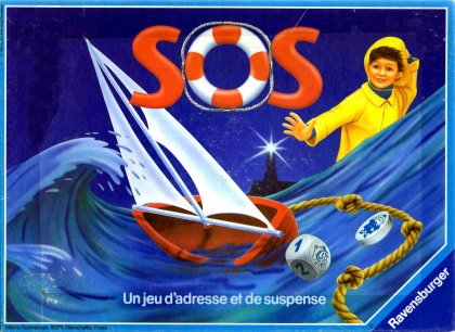 Vous avez enfin le droit de jouer avec l'eau ! Wolfgang Riedesser nous propose, avec SOS, un jeu d'adresse très original à déguster goutte à goutte. Le but du jeu est de ne pas faire couler le bateau. Chaque joueur, à son tour, lance un dé qui indique combien de fois il doit verser de l'eau dans le bateau. Les plus habiles parviendront maîtriser leur geste et à ne verser qu'une seule goutte à chaque fois. Les parents n'ont pas à s'inquiéter : une cuvette est placée sous le jeu, pour protèger la table.