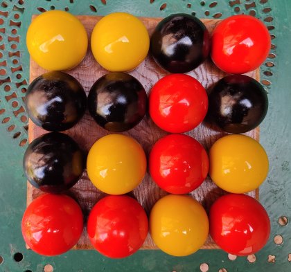 De 3 à 6 joueurs se partagent secrètement 30 billes, soit 10 de chaque couleur. Chacun garde sa réserve secrète. À tour de rôle les joueurs posent une de leurs billes sur un trou ou sur une plate-forme comprenant au moins 2 billes de la même couleur.
