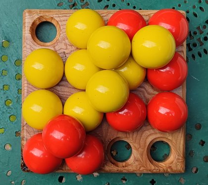 Il était impensable qu'aucun des jeux développées pour le système Shibumi ne fasse référence à des « polybilles ». Heureusement Pablo Schulman a conçu pour nous le jeu Spetris qui, comme son nom le suggère, utilise des pièces « élargie » formées de deux ou trois billes connectées d'une certaine manière et qui doivent être placés tels quels sur la pyramide en construction. Si l'on considère les difficultés rencontrées par certains joueurs avec les pièces élargies et encore plus avec la vision en volume, le public de Spetris est assez réduit. En tout cas, moi j'en suis et je m'en lasse pas. Variante enfant adulteÀ l'Escale à jeux, nous proposons la variante suivante pour jouer entre adulte et enfant. Le plus jeune joueur peut, sans que ce ne soit une obligation, couper une fois dans la partie une de ses pièces en deux. Il aura une pièce de plus, mais elles seront plus faciles à poser.