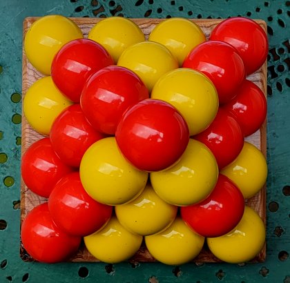 une bille est visible quand on ne peut pas la voir si la pyramide est regardée verticalement par au-dessus |